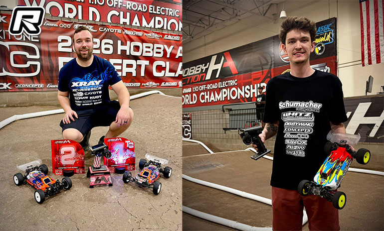 Xray’s Dakotah Phend and Schumacher’s Broc Champlin where the main winners at the annual Desert Classic presented By Stick It One.  One of 2023 1:10 Offroad Worlds host track Hobby Action’s blue ribbon events, the 10th edition of the Arizona race attracted 325 entries and it Modified 2WD Buggy it was Phend who took the TQ from the Team Associated pairing of 2025 4WD winner Aydin Horne and Finnish visitor Joona Haatanen.  In 4WD, taking two of the 4 qualifiers it was Champlin who locked in the TQ ahead of Phend, who topped Q4, and last year’s 2WD winner Chase Lemieux.  In the Mains, 2WD would got to the third leg. While Phend won A1, he would finish 3rd in A2 with Haatanen taking the win from Horne who had a DNF in A1.  Horne would win A3 from Phend but with his A1 winning time faster it was Phend who took the overall, his first 1:10 win with Matrix tyres, with Haatanen completing the podium ahead of Ryan Cavalieri.  In 4WD, Champlin executed an early win taking A1 & 2 with Phend taking A3 to claim second as Haatanen again claimed third.  In 40+, Team Associated team manager Brent Thielke completed the double taking both 2WD and 4WD as the Top Qualifier.