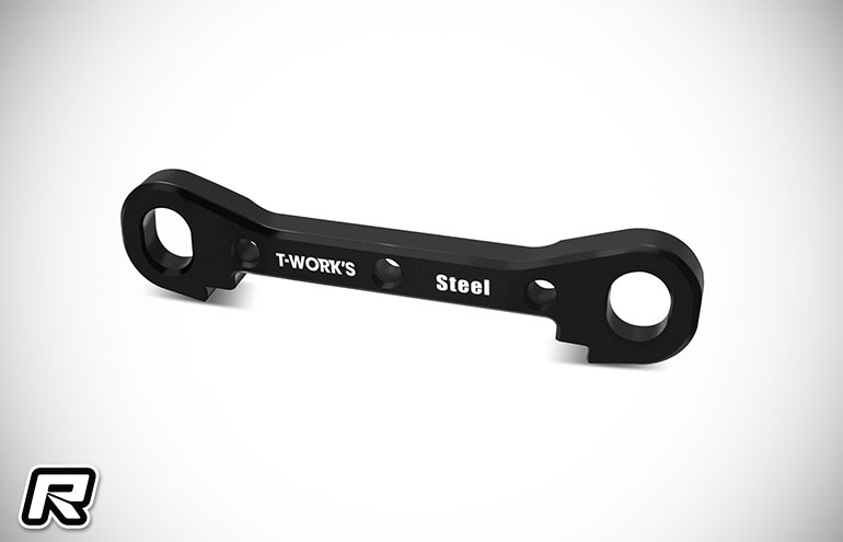 Leading aftermarket parts producer T-Works has released these Steel A and D suspension mounts for the Mugen Seiki MBX8 1:8 Buggy.  Machined from high-quality steel, it boasts deformation resistance and wear durability, with each mounts weight helping enhance vehicle handling stability as it can be used as a counterweight to flexibly adjust the front-rear weight distribution ratio.   Each mount weighs almost 3 times that of T-Works T7075 aluminium version with the Steel A Mount weighing in at 16.1 grams and the D Mount 32.4 grans.